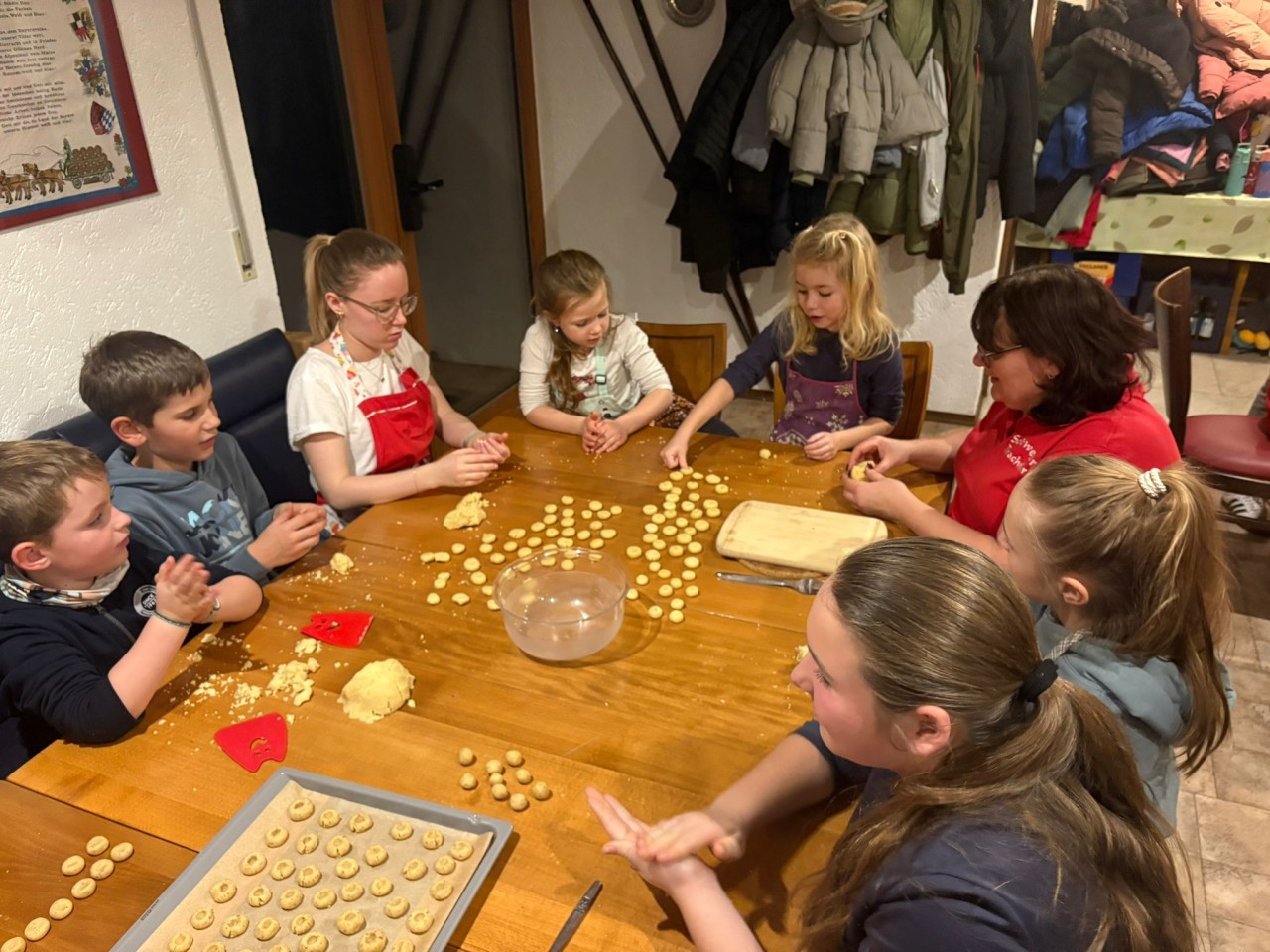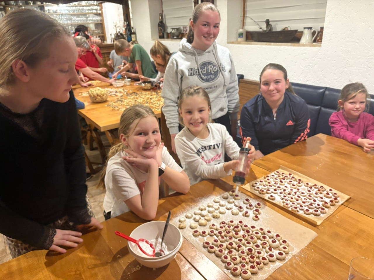 Schnell zeigte sich: Einige der jungen Teilnehmer sind bereits echte kleine Bäckermeister, während andere noch ein wenig Übung brauchen – was der guten Stimmung jedoch keinen Abbruch tat. Überall wurde gelacht, probiert und gegenseitig geholfen, und der herrliche Plätzchenduft erfüllte bald den ganzen Raum.